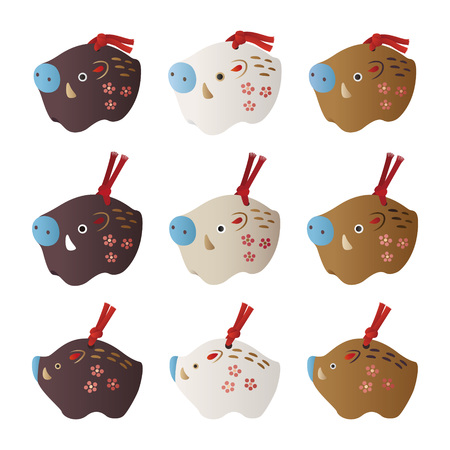 中国の干支動物イノシシセラミック人形イラストのイラスト素材 ベクタ Image