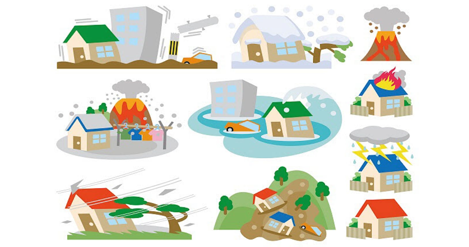 フリーイラスト 土砂崩れや洪水や津波などの自然災害のセットでアハ体験 Gahag 著作権フリー写真 イラスト素材集