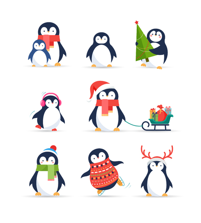 かわいいペンギン セット イラスト クリスマスのご挨拶のイラスト素材 ベクタ Image